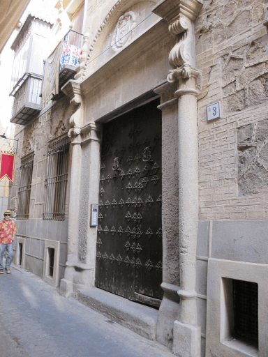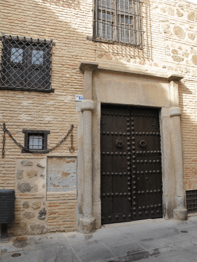 Calle de los Aljibes, 8 Edificio en tres plantas, con portada de Sebastiano Serlio y acabados de revoco imitando piedra en los bajos y aspecto de ladrillos más arriba. Toda la estructura de la casa es de ladrillo antiguo sobre vigas de madera cruzadas, al estilo de la fachada que se ve al aire en las casas de la calle de Santo Tomé. Esas vigas aún se ven al aire, con el ladrillo, en algunas estancias de la vivienda.