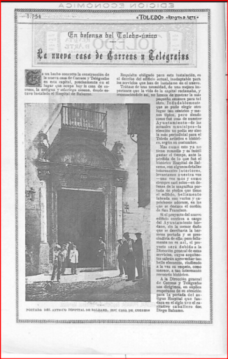 En 1927 la delegación de Correos y Telégrafos tenía en el edificio su sede y plantea una reforma integral del mismo. Se perdió para siempre en estas obras el hospital en sí, pero al menos se llegó a salvar -gracias a la lucha y denuncia de varios colectivos liderados por la revista «Toledo»- la portada, que desde entonces quedó trasladada unos metros desde el inicio de la Plaza de San Vicente hacia el interior de la calle de la Plata,