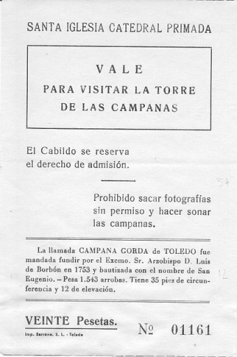 Vale para visitar la torre de las campanas (1983) Fuente: campaners.org