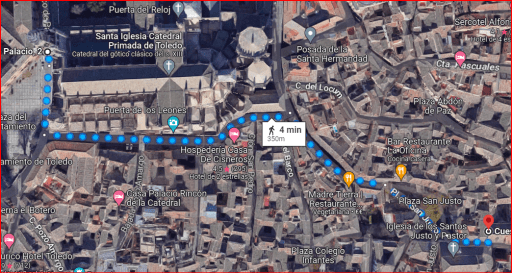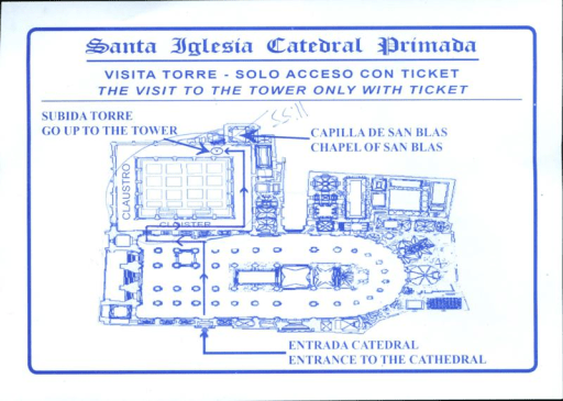 Para llegar a la puerta de la Torre nos dan un mapa que nos indicará cómo atravesar la Catedral hasta llegar a la puerta que comunica esta con el Claustro hasta la puerta situada al lado de la Capilla de San Blas.