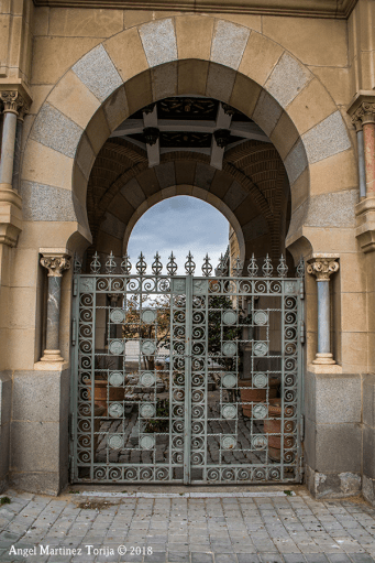 Desde allí la personalidad podía dirigirse a la lonja exterior por la puerta opuesta al andén a fin de tomar los vehículos dispuestos. Una de las puertas laterales permitía también salir a un espacio más recoleto, protegido por la bóveda que soporta la torre. Este lugar es un ámbito estudiado, ornamentado, cuadrado, limitado con tres arcos y la puerta del salón, teniendo en su parte superior una cubierta de crucería de tipo califal. Una artística cancela, con elementos heráldicos entre sus barrotes, defiende el paso por la fachada general, abriéndose tan sólo para que el visitante «vip» y su cortejo cruzasen por aquí sin tener que atravesar el vestíbulo general, bien el llegar a Toledo, o bien en el momento de partida.