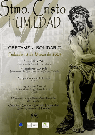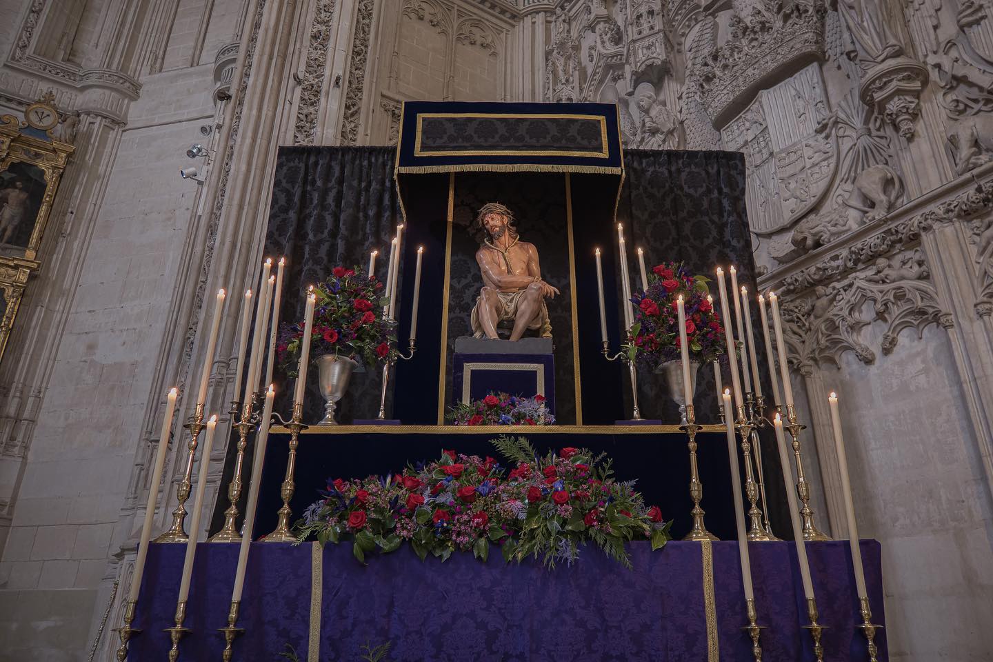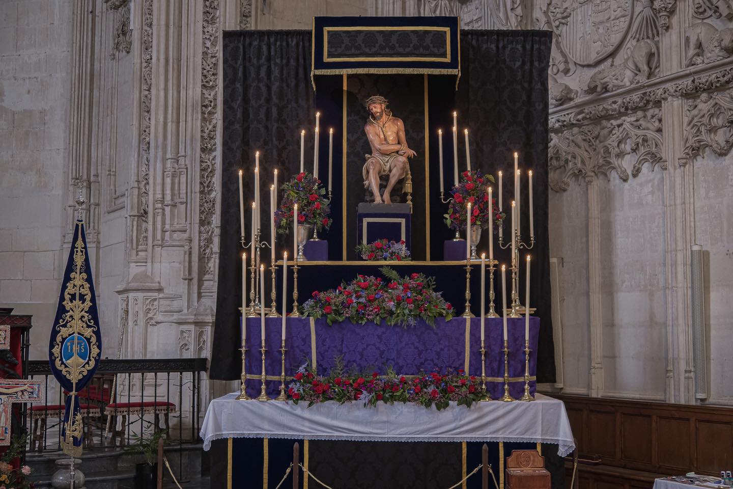 La Imagen, y la Cofradía, se encuentra en la Iglesia del Monasterio de San Juan de los Reyes, del que hablaremos en una próxima entrada; ubicada en un sencillo altar en una de las capillas laterales. Con motivo del concierto mencionado al principio, el Cristo de al Humildad fue ubicado en altura en el centro del Altar Mayor, dejándonos sin duda con una estampa única para los que, como nosotros, tuvimos la oportunidad de contemplarla por primera vez.