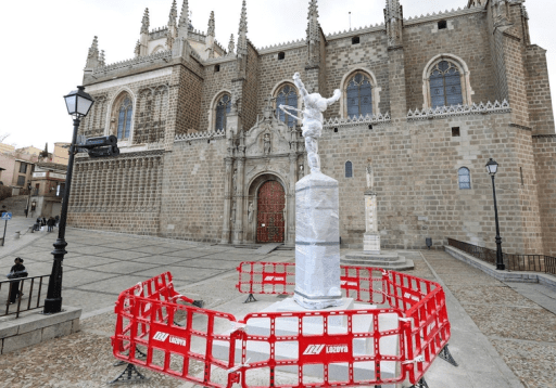 Toledo: una imponente escultura de Longobardi ya luce frente a San Juan de los Reyes