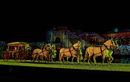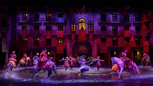 Más de 50 actores, bailarines y acróbatas; 10 caballos de raza hispano árabe; más de 500 trajes elaborados al detalle; unas estudiadas coreografías; una fabulosa banda sonora y unos increíbles efectos especiales conforman una puesta en escena inédita que ha resultado determinante en la obtención de este nuevo reconocimiento internacional para el parque.