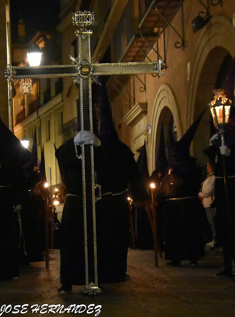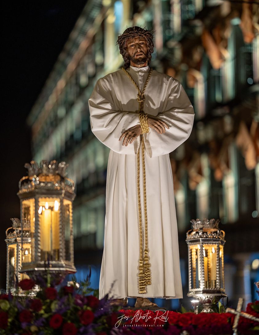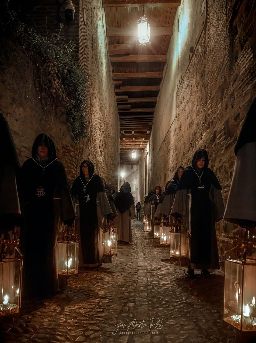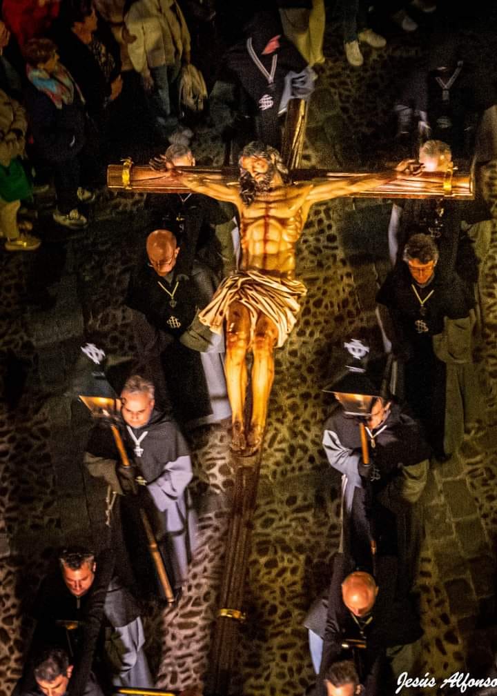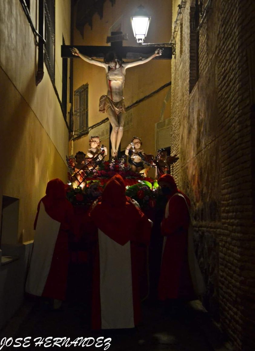 Eran las 1:15 de la madrugada y aún andaban por la calle Sillería la procesión del Santísimo Cristo de los Ángeles, una foto muy llamativa en la que se juntan a la misma altura estos dos Cristos. Oscar Lopez Perez