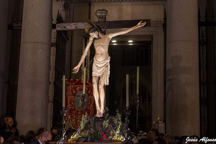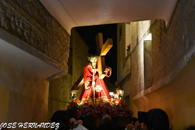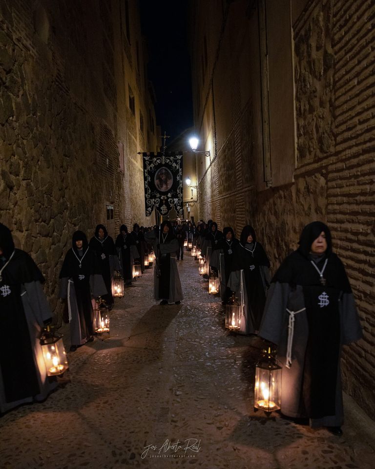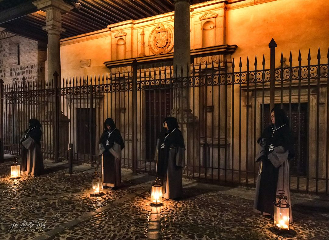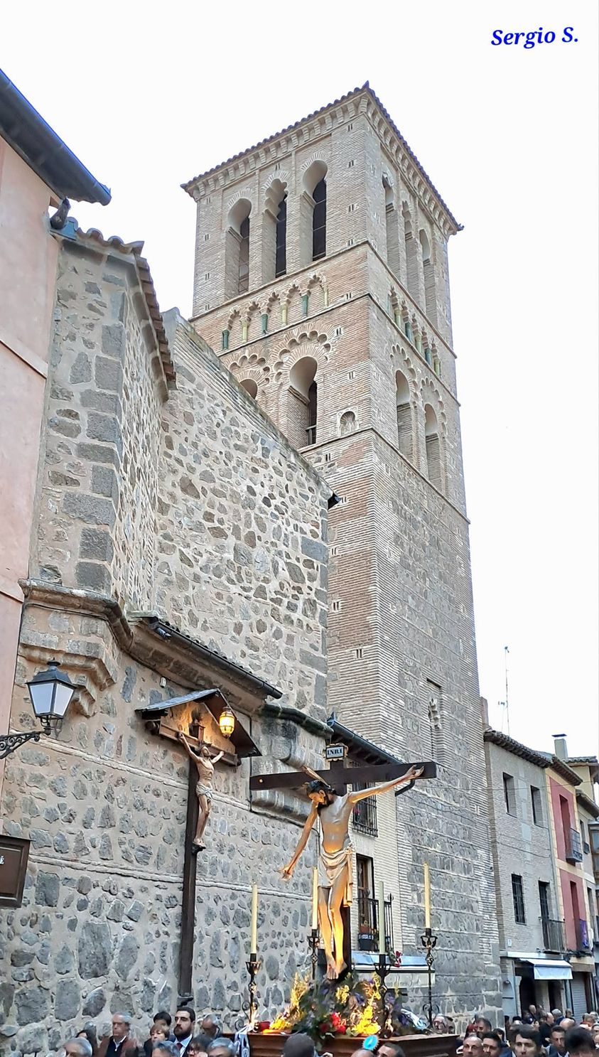 Salida de la iglesia del Monasterio de Santo Domingo el Real, calle Buzones, plaza de Buzones, calle de la Merced, calle Tendillas, calle Esteban Illan, plaza de Padilla, calle María Pacheco, Plaza de la Cruz, Travesía de la Cruz, calle de las Bulas, Plaza de Valdecaleros, Calle Aljibillos, calle Rojas, Plaza de El Salvador, calle Trinidad, Callejón de Jesús y María, Plaza del Padre Juan de Mariana, Calle Alfonso X El Sabio, Plaza de San Vicente, Calle Alfileritos, Calle Carmelitas Descalzos, Plaza de Carmelitas Descalzos, Cobertizo de Santo Domingo El Real, Plaza de Santo Domingo el Real, y entrada a la iglesia del Monasterio de Santo Domingo el Real donde finaliza, con un recorrido espectacular por callejuelas estrechas de Toledo, y de veras que os recomiendo esta procesión, pero os lo recomiendo por esas calles estrechas…: https://joseherfer.blogspot.com/