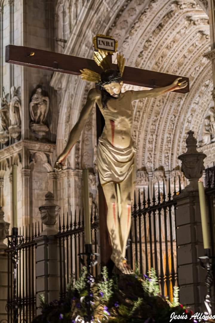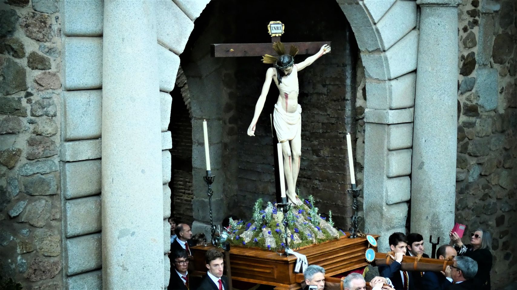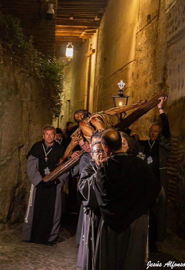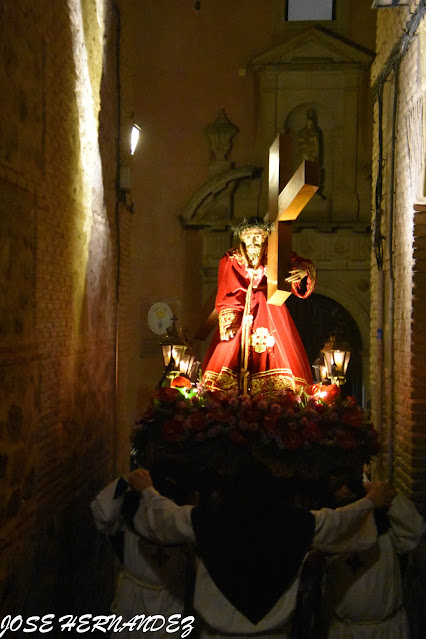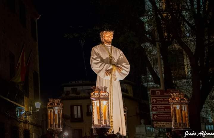 Salida de la iglesia del Monasterio de Santo Domingo el Real, calle Buzones, plaza de Buzones, calle de la Merced, calle Tendillas, calle Esteban Illan, plaza de Padilla, calle María Pacheco, Plaza de la Cruz, Travesía de la Cruz, calle de las Bulas, Plaza de Valdecaleros, Calle Aljibillos, calle Rojas, Plaza de El Salvador, calle Trinidad, Callejón de Jesús y María, Plaza del Padre Juan de Mariana, Calle Alfonso X El Sabio, Plaza de San Vicente, Calle Alfileritos, Calle Carmelitas Descalzos, Plaza de Carmelitas Descalzos, Cobertizo de Santo Domingo El Real, Plaza de Santo Domingo el Real, y entrada a la iglesia del Monasterio de Santo Domingo el Real donde finaliza, con un recorrido espectacular por callejuelas estrechas de Toledo, y de veras que os recomiendo esta procesión, pero os lo recomiendo por esas calles estrechas…: https://joseherfer.blogspot.com/