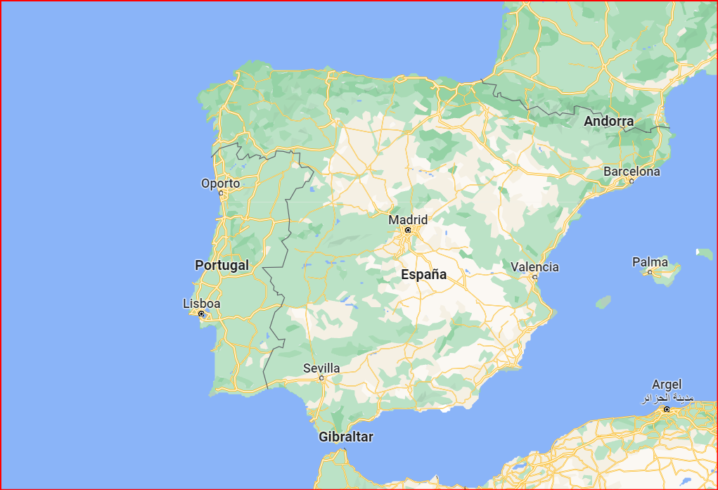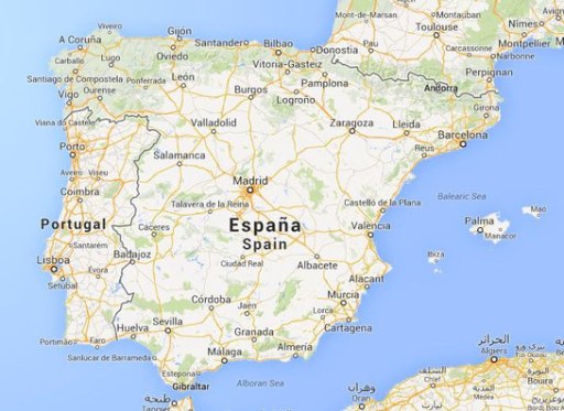 Acabo de abrir el Google Map y le he hecho un salvado de pantalla. Como podéis comprobar, no aparece Toledo, aunque sí Madrid, Valencia, Sevilla, Barcelona, Palma….. como las ciudades más conocidas y destacadas del país.