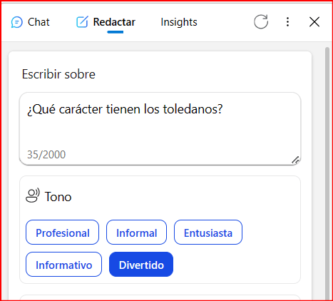 Le he pedido que me respondiera en tres tonos: Divertido, entusiasta e Informativo.