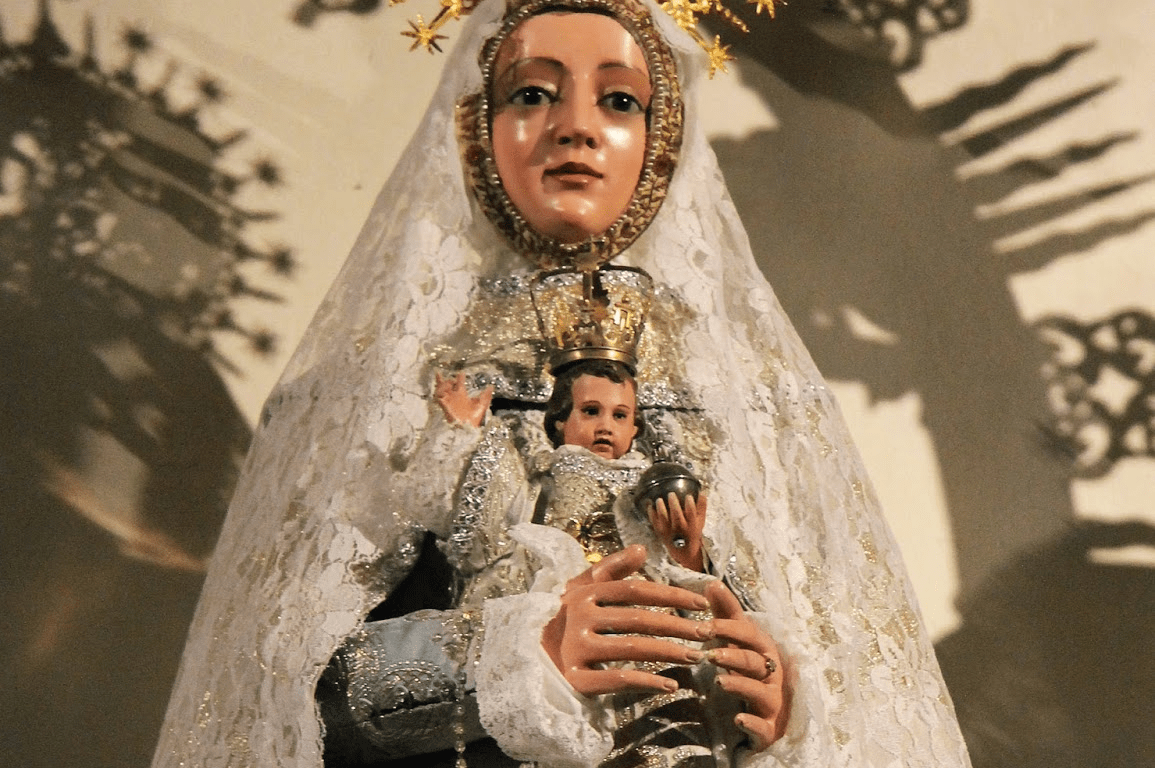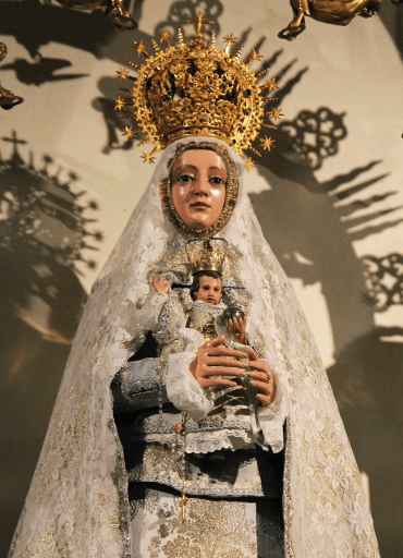 Imagen de la virgen María que sigue el modelo iconográfico tradicional de Toledo: Virgen con el Niño sostenido entre las manos, rodeada de una ráfaga, corona real y toca cerrada en torno a un rostrillo estrecho. La hermandad celebra un novenario en honor de su titular, que tiene como colofón la solemnidad de Pentecostés, saliendo en procesión sobre una carroza a ruedas por las calles del barrio. Es venerada en una capilla propia en la iglesia de Santo Tomé.