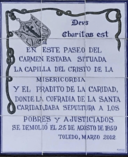 En el incendio del edificio durante la Guerra Civil, como apunta Goitia Graells en la revista Toletum, se quemó el archivo que se conservaba en la capilla. La forma de proceder de esta Cofradía era la siguiente: “una vez pronunciada la sentencia, condenatoria a muerte, por el tribunal o autoridad competente, y señada la fecha de entrada del reo en Capilla, dicha autoridad lo comunicaba a las dos Cofradías (Sangre y Santa Caridad) las que inmediatamente procedían según lo ordenado en sus Constituciones.