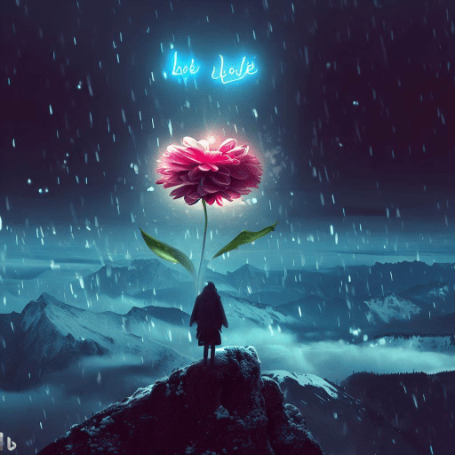 El amor es como una flor hermosa, en la cima de la más alta montaña, El amor se defiende del frío y la nieve, brilla en la oscuridad y llueve cada día