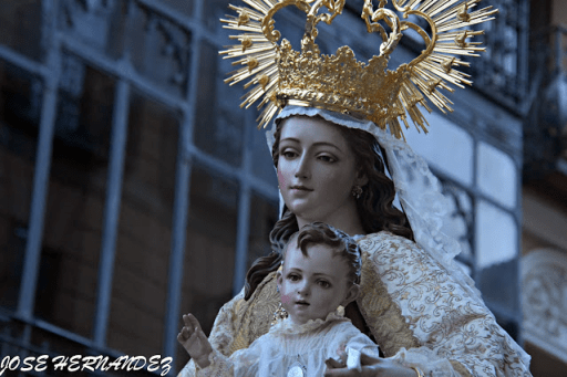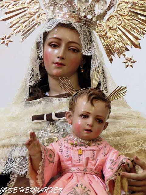Si os fijáis en las fotos de la Virgen gira su cabeza hacia su izquierda para contemplar al Niño Jesús, mientras la Virgen del Carmen muestra el cetro y el escapulario.