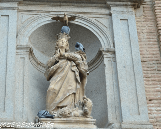 Este convento, construido en el siglo XVII, es una de las principales muestras del barroco toledano. Fue edificado entre 1643 y 1655 pero su portada de piedra se contrató en 1651 según las órdenes del Carmelita Descalzo Fray Pedro de San Bartolomé. Es una maravilla, hasta ver como las palomas se posan en las imágenes, como podéis ver:
