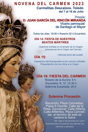 Es curioso que en una ciudad sin mar como Toledo, haya tanta devoción por esta Virgen del Carmen… quizás es por el enorme patrimonio carmelita, y quizás esto es debido a las peticiones de evitar ahogamientos de personas en el Tajo… cosa muy habitual hace años….
