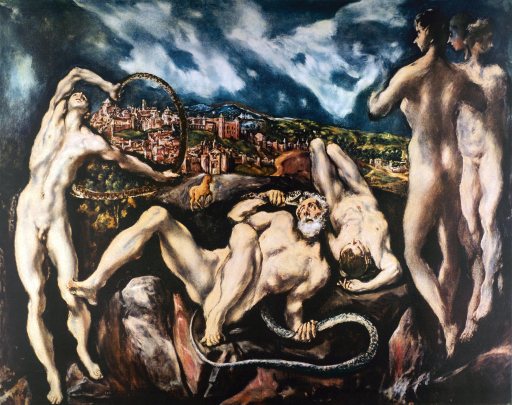 El Greco recrea en este óleo el castigo a Laocoonte, sacerdote de Apolo en Troya. Al fondo aparece Toledo, fundada por los troyanos según la tradición. Galería de Arte, Washington.