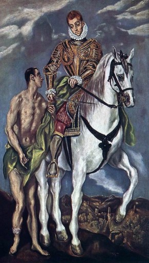 Otro ejemplo es el cuadro de San Martín y el mendigo, donde se ve el puente del mismo nombre sobre el río Tajo, con la silueta de la ciudad al fondo. El puente simboliza el paso del mundo material al espiritual, y el gesto del santo que comparte su capa con el pobre representa la caridad cristiana.