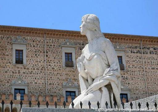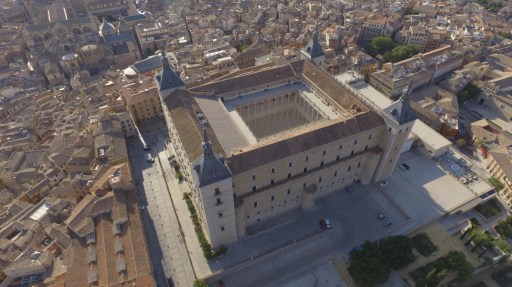 El alcázar de Toledo o Real alcázar de Toledo es una fortificación de carácter civil y militar, ubicada en la parte más alta de la ciudad española de Toledo. Se trata de una gran edificación de forma cuadrangular de 60 metros de lado, enmarcada con cuatro grandes torres de 60 metros de altura, cada una coronada por el típico chapitel madrileño de pizarra. Su privilegiada situación ha hecho de él un lugar de gran valor estratégico y así lo intuyeron los diversos pueblos que se asentaron en él. Su nombre se debe a uno de esos dominadores: los árabes, que fueron los que lo llamaron «Al Qasar» القصر, que significa «fortaleza».