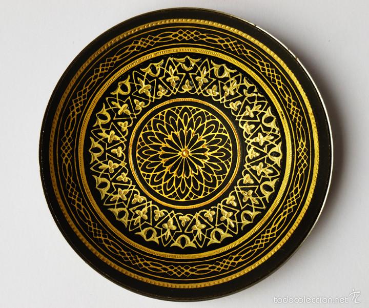 Fíjate en el escaparate del establecimiento donde lo vas a comprar. Las tiendas que producen damasquinado hecho a mano suelen lucir una de esas bolas asentadas en un marco triangular de madera sobre la que se trabaja la pieza. Incluso te pueden hacer una pequeña demostración de cómo se realizan las incrustaciones. Cuestión muy curiosa de ver en directo y que te ayudará a valorar esta laboriosa técnica.