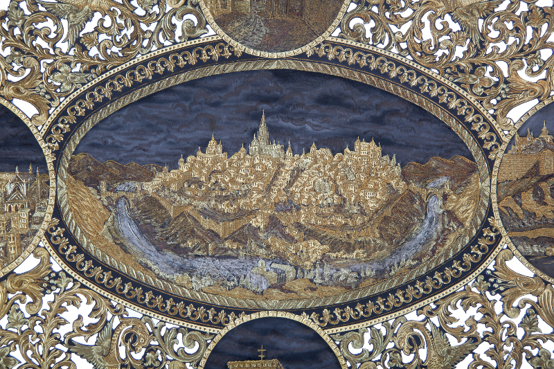 El damasquinado de Toledo es un arte milenario que consiste en la incrustación de oro de 24k, oro de 18k y plata sobre una base de hierro dulce mediante cincel y martillo . Esta técnica artesanal se originó en Damasco y fue traída a Toledo por los árabes. El damasquinado es una de las manifestaciones artísticas más representativas de Toledo.