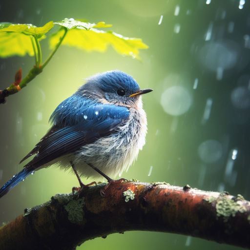El tema es la búsqueda de un refugio por parte de un pajarito que se ve sorprendido por la lluvia.