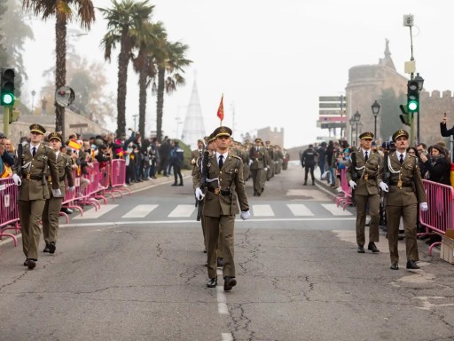 Las fuerzas militares participantes, que cantaron el himno de los difuntos y el de la Academia de Infantería de Toledo a los acordes de la unidad de música de la Academia, finalizaron el acto con un desfile militar que ha transcurrido desde el paseo de Recaredo, cruzando por la propia rotonda, subiendo hacia la Puerta de Bisagra para finalizar en el paseo de Merchán.