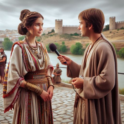 Reportero: Ave. Estoy aquí, en Toletum, a orillas del río Tagus para conocer la opinión de sus habitantes de la ciudad sobre las obras que está realizando el Imperio romano y cómo les afecta el censo que ha ordenado Augusto César.