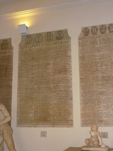 Los sistemas de conteo de años previos a la invención de «a. C.» tienen muchas limitaciones. Los romanos no poseemos aún una era consensuada para datar los acontecimientos, por lo que referenciamos nuestra historia según las personas que han ocupado el puesto de cónsul. Para esto, disponemos de tablas de mármol que listan los distintos consulados. Los Fasti Capitolini son exhibidos en el foro, donde se pueden consultar con facilidad.