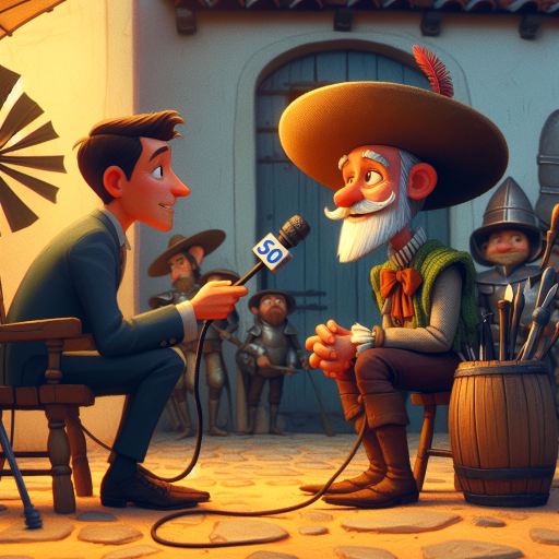 Reportero: Buenos días, señor don Quijote. Soy un reportero de la revista literaria «El Quijote Moderno» y me gustaría hacerle unas preguntas sobre su vida y sus aventuras.