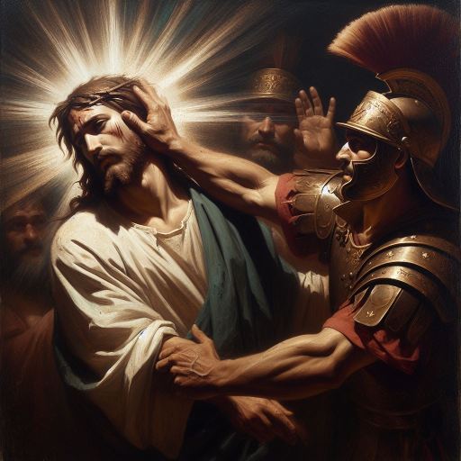 También aquí es digna de notarse la superioridad real de Jesús, que se pone más de relieve aún con el incidente inmediato de la bofetada.