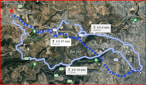 Presentador: Caminaron desde Jerusalén, Israel a Emmaus St, Abu Ghosh, Israel