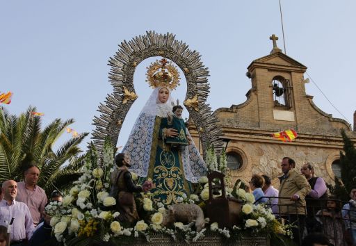 La imagen representa la aparición de la Virgen a un pastor indicándole el lugar para levantar una ermita. No deja de ser un reflejo de la influencia que en tierras toledanas ha tenido la devoción de Sierra Morena.