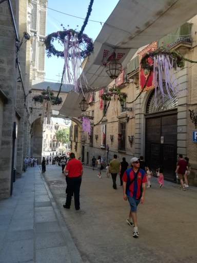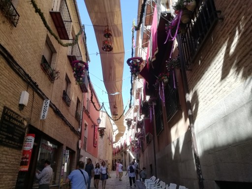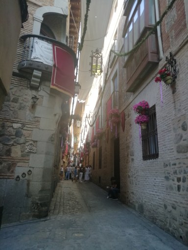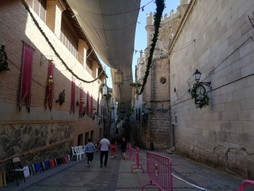 Hoy jueves es la procesión del Corpus Christi en Toledo, por lo que la ciudad se ha vestido con sus mejores galas, de manera que ayer por la tarde fui dar una vuelta por el recorrido profesional.