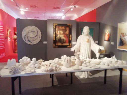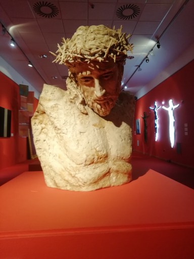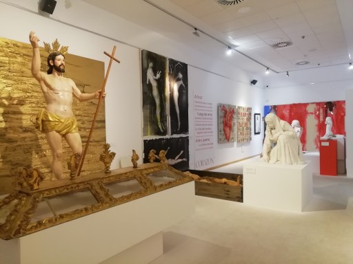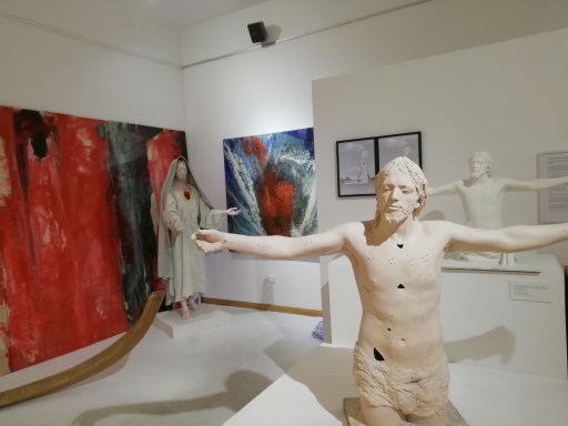 La sala de la Muerte está presidida por una gigantesca cruz, interpretación de la cruz de Velázquez, del fotógrafo, Premio Nacional de Fotografía, José Manuel Ballester. Y en el ámbito dedicado al Sagrado Corazón de Jesús se presenta el proyecto del escultor Javier Viver: el Sagrado Corazón más grande