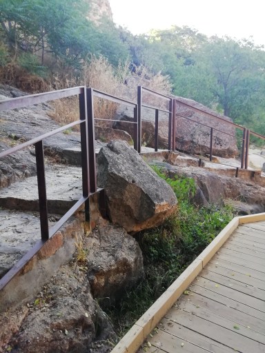 Un poco más adelante, pasado el puente y la presa, nos encontramos con el primero de esos retoques, de manera que a parte de los escalones se ha habilitado una rampa