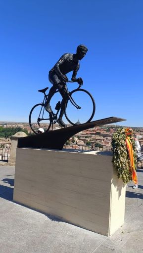 - :Ayuntamiento de Toledo La escultura de Bahamontes ya está en el Miradero para recibir la Vuelta Ciclista a España tal y como comprometió la alcaldesa