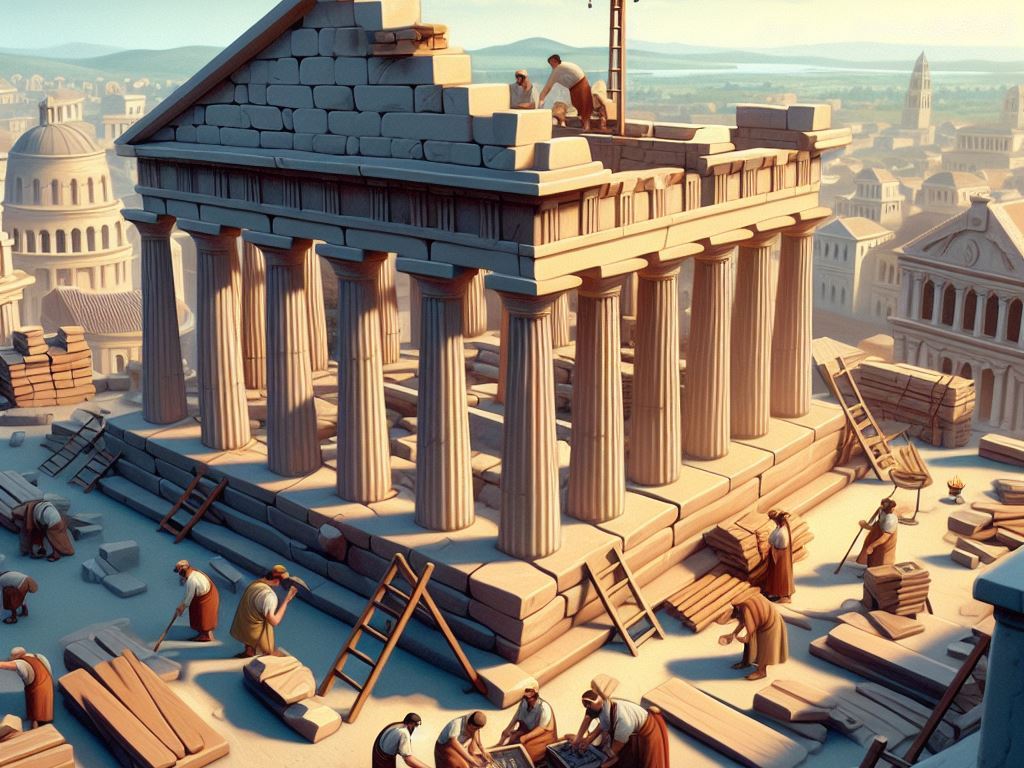 Estamos planificando una construcción clásica con un podium elevado, columnas corintias y un amplio pronaos (el vestíbulo del templo) que conducirá al cella, la cámara interior donde se colocarán las estatuas de los dioses. Usaremos piedra local para mantener la estructura en armonía con el entorno, pero introduciremos mármol traído desde la Bética para detalles escultóricos. No será solo una estructura religiosa, sino un símbolo del poder de Roma.