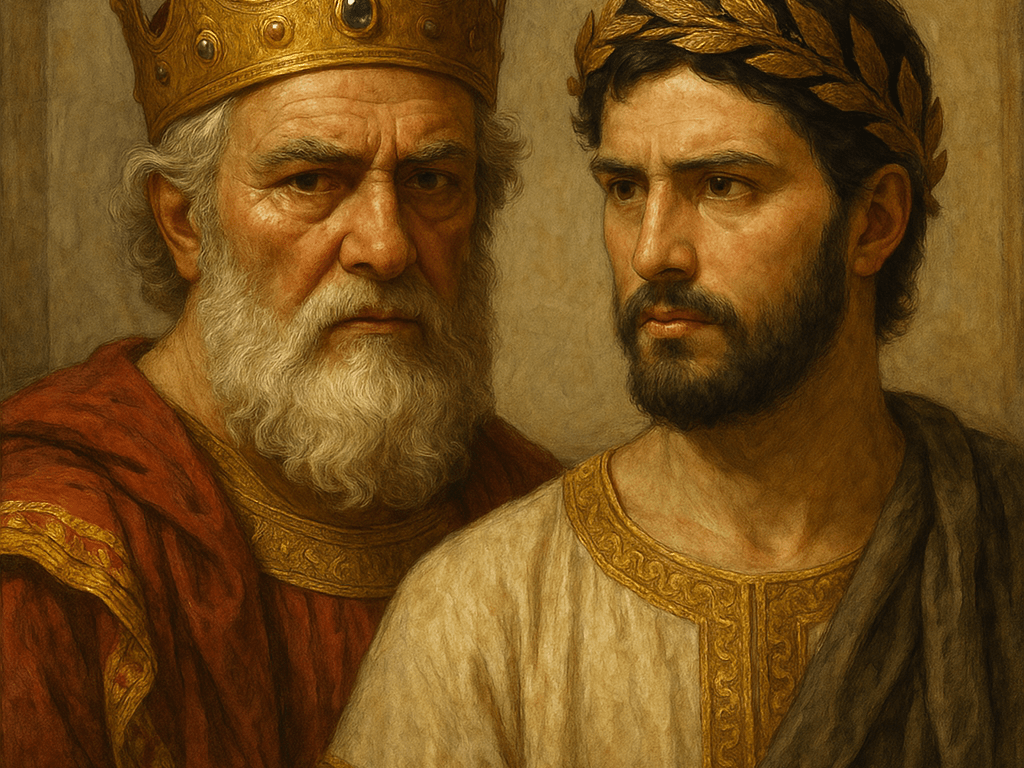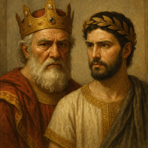 Que me recuerden no como un hombre blando, sino como un rey que aseguró la estabilidad de Judea. He levantado templos, fortalezas y ciudades que perdurarán mucho después de mi muerte. He mantenido la paz con Roma y he convertido Jerusalén en una joya digna del Imperio. Que la posteridad juzgue mis actos, pero que nadie diga que no goberné con firmeza.