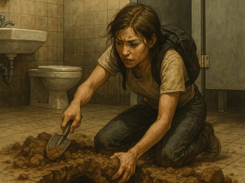 Imagina que Jessica, encerrada en uno de los cubículos del baño de la terminal de llegadas del aeropuerto de Barajas, se siente acorralada por el misterio de su viaje. Sin saber en qué país está exactamente, comienza a preguntarse si hay una vía de escape. Aquí es donde entra su espíritu curioso y rebelde…