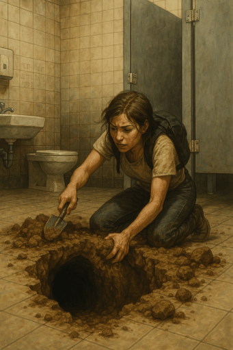 - Con su estuche escolar —donde guarda más que lápices— comienza a raspar la pared, soñando con encontrar un pasadizo secreto.