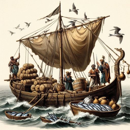 Su barca, modesta y de fondo plano —una scapha con mástil corto y vela de lino—, estaba cargada de vituallas, salazones, ánforas de aceite y sueños más pesados que el plomo. La misión: llegar a Olisipo navegando todo el curso del río Tajo, desde las tierras altas de la Carpetania hasta el océano desconocido.