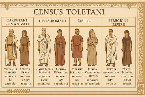Toletum, aún sin estatus formal de municipium, ya muestra una estructura demográfica digna de una ciudad romana: indígena de espíritu, romana de forma. Esta diversidad no es un obstáculo, sino la argamasa que da solidez al edificio social que Roma construye.