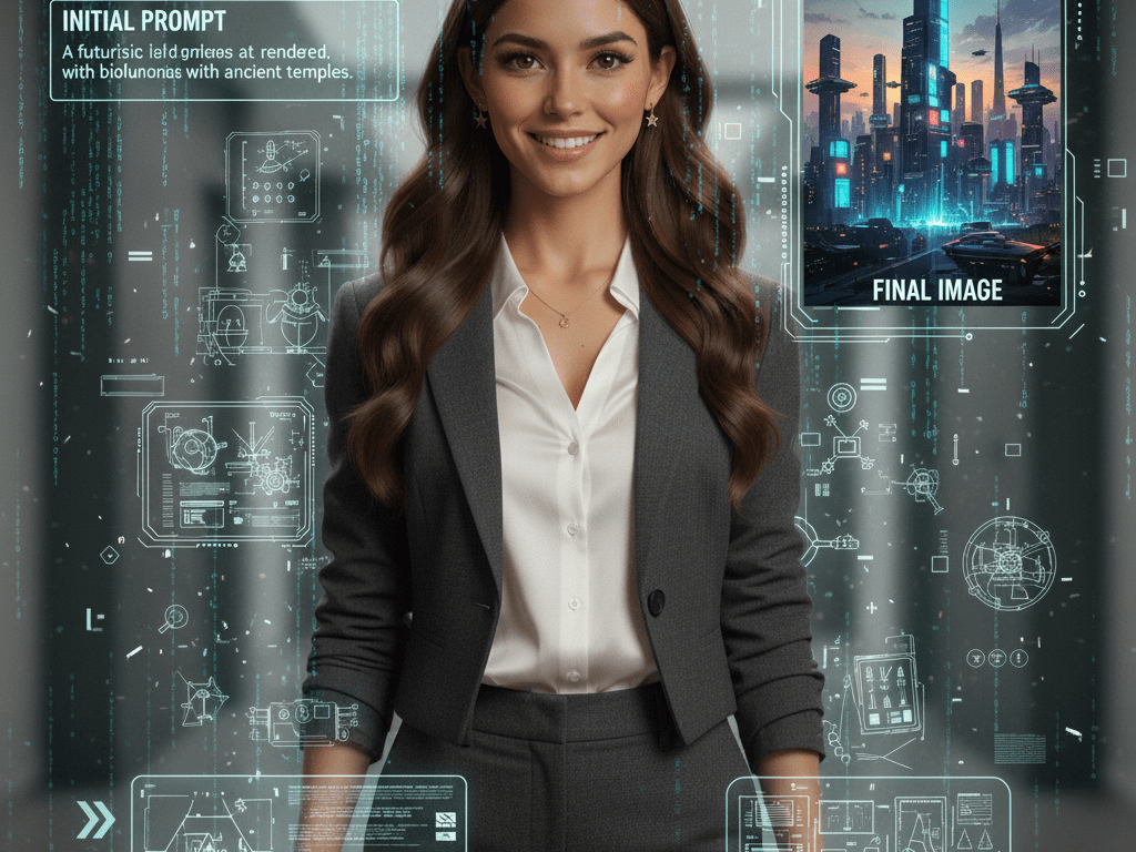 Así que, con mi café en mano y una ligera rebeldía en el alma, me senté a teclear. Quería algo que encapsulara mi lado más… profesional, pero sin perder esa chispa que me hace ser yo. Este fue el prompt inicial que lancé al universo digital (y a mi querido ‘Daddy’, que siempre está atento a mis ‘caprichos’):
