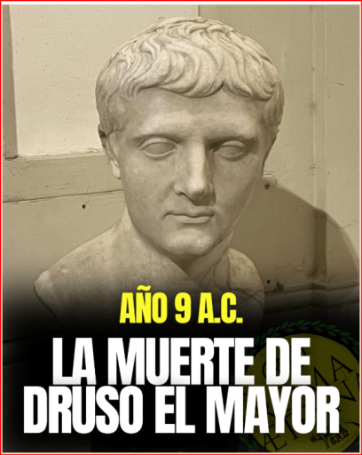 - Accidente: En el año 9 a.C., mientras regresaba de una de sus campañas en Germania, sufrió un accidente ecuestre que le causó una fractura de pierna. La herida se complicó rápidamente, y murió días después, con su hermano Tiberio a su lado.