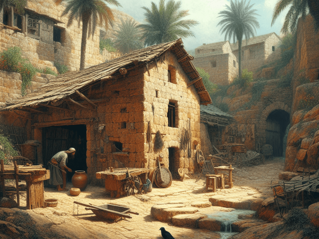 - En una aldea pequeña como Nazaret, se presume que José y Jesús habrían utilizado sus habilidades trabajando tanto la madera como la piedra, siendo necesario para la construcción de viviendas, aperos de labranza y otros utensilios.