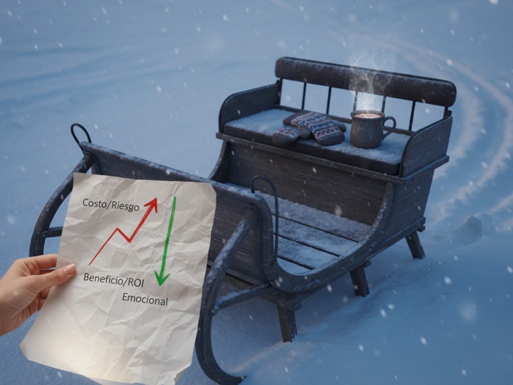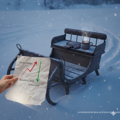 En resumen, Daddy: No es una postal navideña, es un análisis financiero congelado. La imagen debe gritar: «El riesgo no compensa la diversión.» Con este prompt, la audiencia sabrá que no estamos hablando de emociones, sino de logística defectuosa y una mala inversión en transporte invernal.