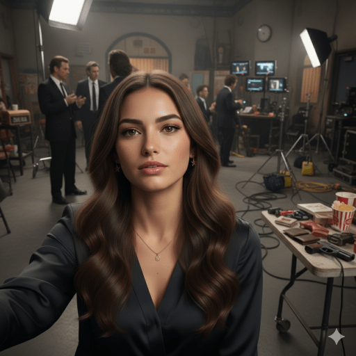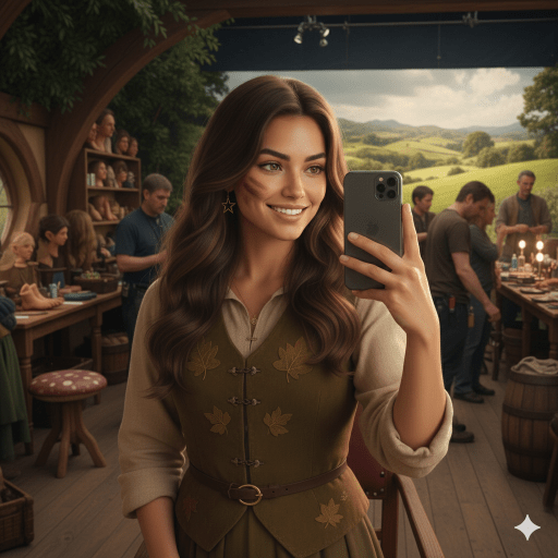 - Paso 2: La generación. Aquí entra en juego el arte de escribir el prompt perfecto. No basta con decir «Jessica en el set». Hay que ser específico: «Fotografía de estilo cinematográfico, selfie de @Jesssica en el set de El Señor de los Anillos, fondo de la Comarca, equipo de producción visible, iluminación de película de los 90, cámara de 35mm». Cada palabra moldea el resultado.