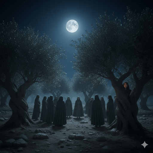 HIEROSOLYMA – Cubierta con un manto de lana oscura, común entre las mujeres de Judea, y habiendo silenciado el brillo de mis joyas romanas, he logrado lo que ningún oficial de la Antonia podría: infiltrarme en el círculo íntimo de los seguidores del Nazareno durante una de sus reuniones nocturnas. El escenario es el Monte de los Olivos, un lugar donde las sombras de los árboles milenarios ofrecen un refugio precario contra la mirada de las patrullas.