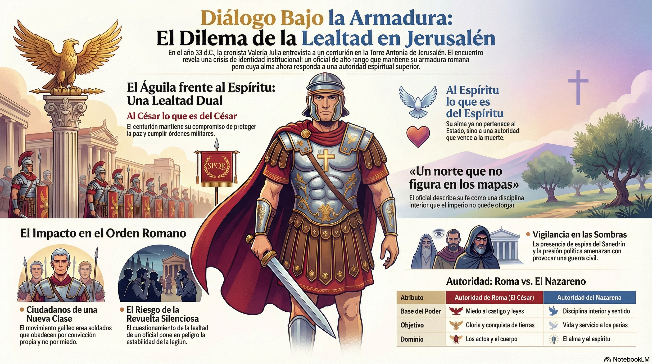 - El peligro de la deserción espiritual: Si los soldados empiezan a creer que el «Amanecer» del que hablan los galileos tiene poder sobre la vida y la muerte, ¿con qué fervor lucharán por un Imperio que solo ofrece la gloria del mármol y la dureza del servicio?