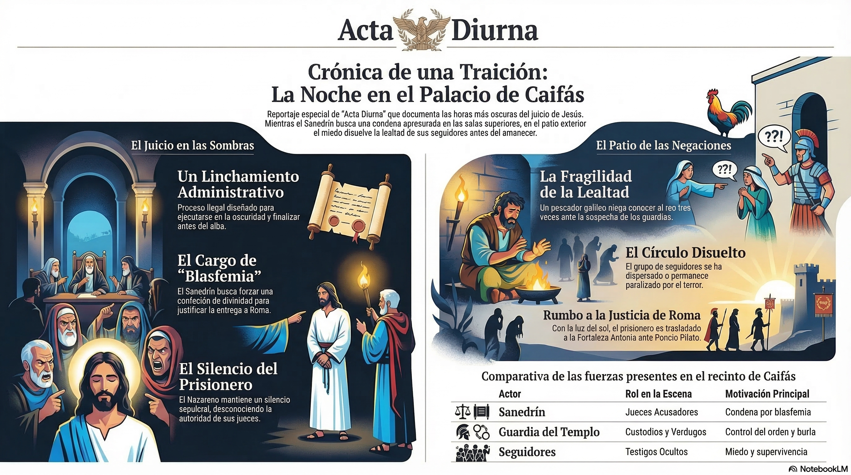 - Urgencia Política: Caifás necesita una sentencia antes del alba. Si el juicio se demora, la multitud galilea que llegó para la Pascua podría amotinarse.